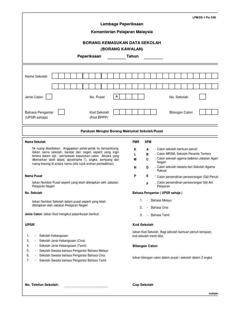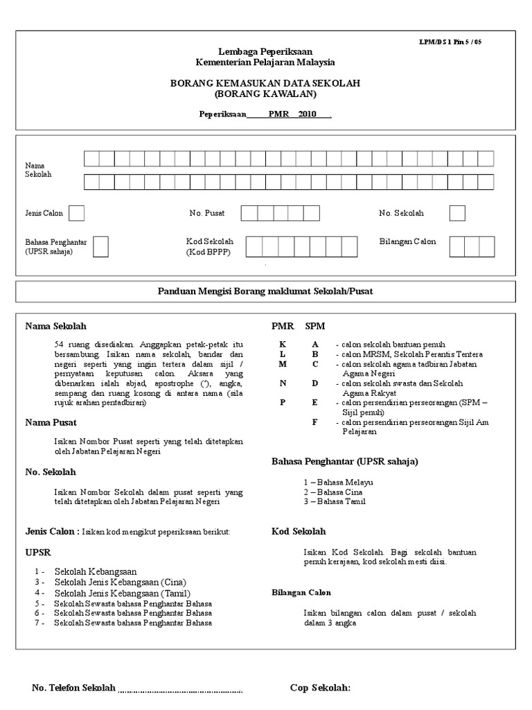 Borang Kemasukan Data Sekolah Borang Kawalan Pdf